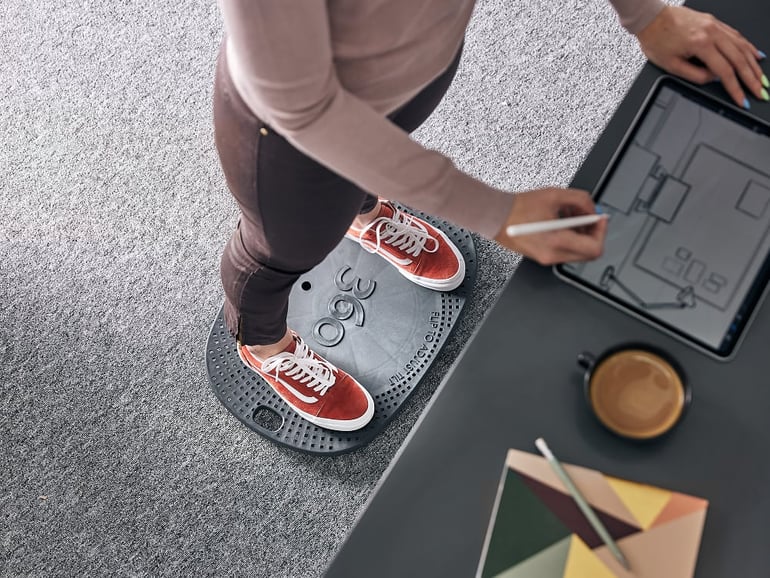 Active standing desk mats are designed to promote constant movement and encourage you to continually shift your position while standing. The best mats feature a topographic surface that stimulates blood flow to the lower limbs and prompts you to stretch your calves and flex your feet. This regular movement improves circulation, reduces fatigue compared to standing in one position and alleviates strain on your legs, knees and back.