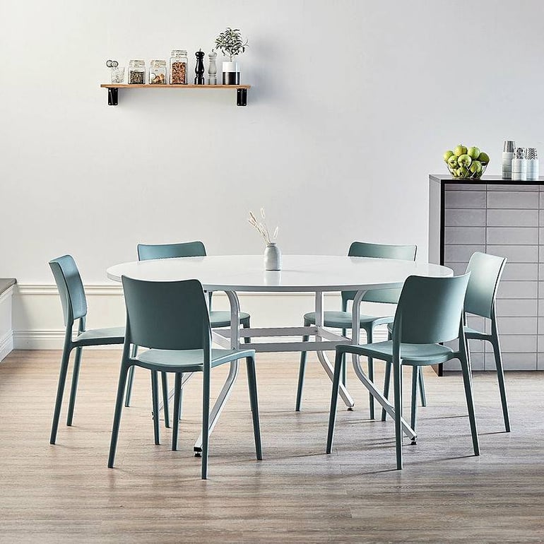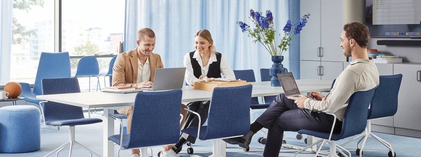 For example, our VARIOUS +RIO furniture set is compatible with several interior settings that can be used in a canteen, meeting room or office. The set is available in several colours, including white and light blue, which can convey a cool vibe.